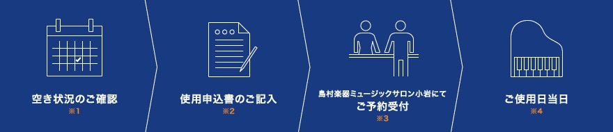 使⽤⽇当⽇はご使⽤前、ご使⽤後に島村楽器にて受付をして下さい